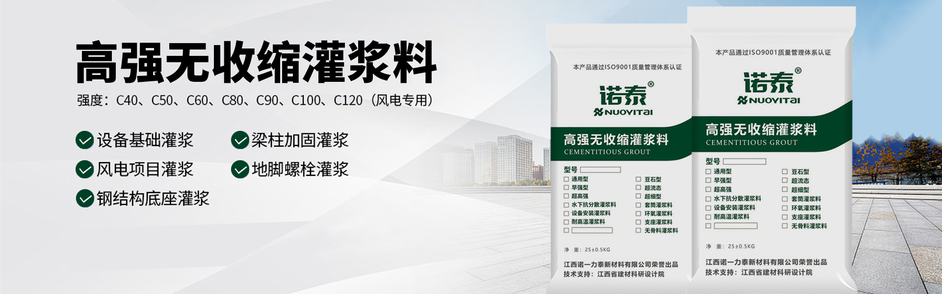 江西諾一力泰新材料有限公司位于江西宜春奉新縣,是專業從事灌漿料水泥路面修補砂漿抗裂砂漿、防水砂漿保溫砂漿隔聲砂漿、粘結砂漿等砂漿系列產品生產銷售的廠家。